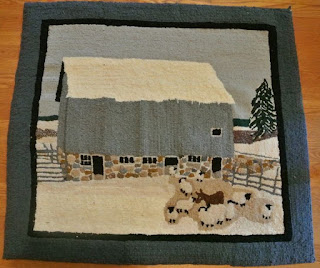 This rug makes me wonder how the lone donkey.. or horse, gets along with the sheep. The muted colours make the piece feel so quiet ..Rosemary has captured this peaceful farm scene so well.