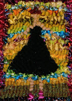 Hooking a 4×5″ piece is a bit of challenge as I use a wide-cut and loosely woven burlap. But I did it! I went down to a 6 cut and used lots of sari-yarn and I was able to get some more detail. So, I ‘ll keep my fingers crossed that this piece is accepted and in the show.