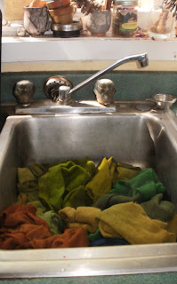 I had to do the dishes to make room for the wool…hee hee. I ended up with some super yummy colours and because I am just winging it, I never know what is going to happen but it is all good today. It is nice and sunny, so I ‘ll get these on the line to dry.