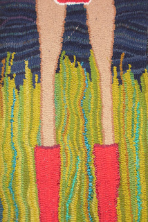 “Do these red boots make my legs look too skinny”? I am having the best time making this rug!!! I am going to work on the water and the mountains today, then dye some pretty blue for the sky and will hopefully have it completed by next week.