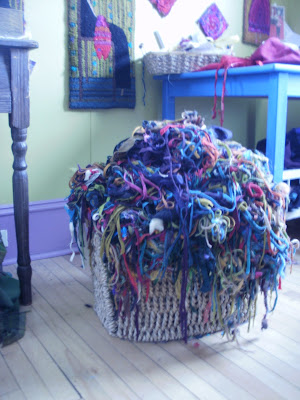 Whenever I cut wool for a rug, I usually end up with leftovers and so into the basket they go. Every now and then I think, “Gee, I should go through that basket and colour sort” ..but hasn’t happened yet. So it is either time for another basket or organize..leaning towards another basket.