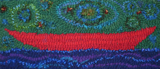 Yesterday I attended the Saltscape Expo and I was demonstrating rug hooking at the Lunenburg Booth. I was working on this little boat and was fortunate to meet so many kind people who were interested in rug hooking. I am an introvert so when I was asked to do this, I became a little panicky. But, as with most things, I worry too much, and it turned out just fine.